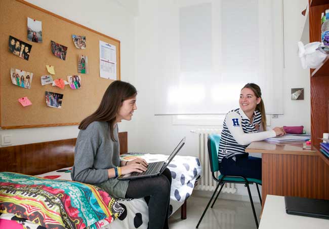Las estudiantes de la residencia Riquelme disfrutan de amplias habitaciones individuales. En ellas pueden descansar y estudiar como alternativa a las salas de estudio.