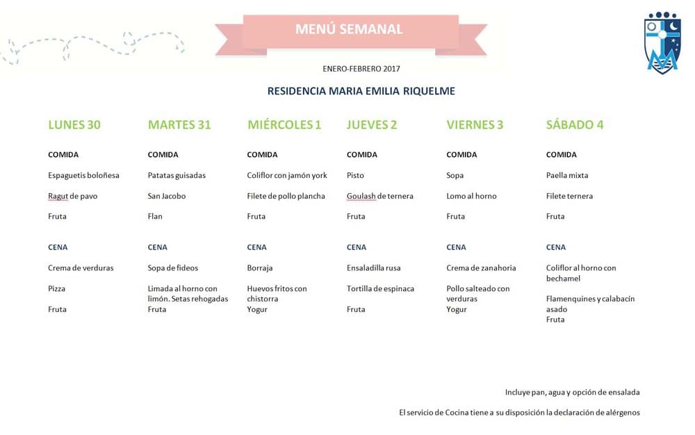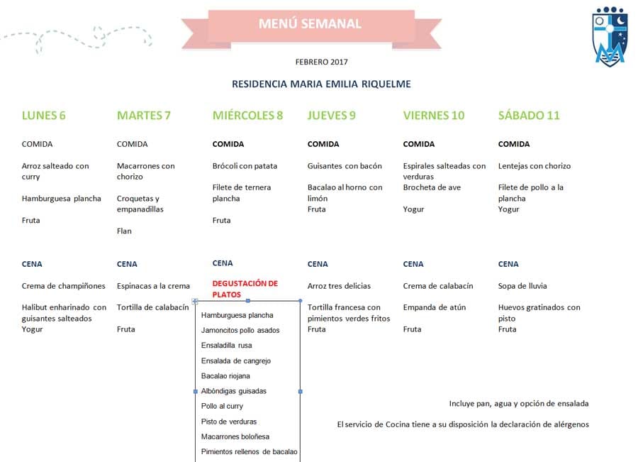 Os dejamos el Menú de la Residencia Riquelme con el que empezamos la primera semana de febrero.